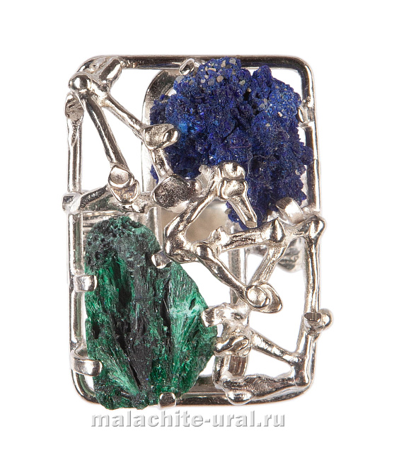 Красивое кольцо с камнем малахит и азурит